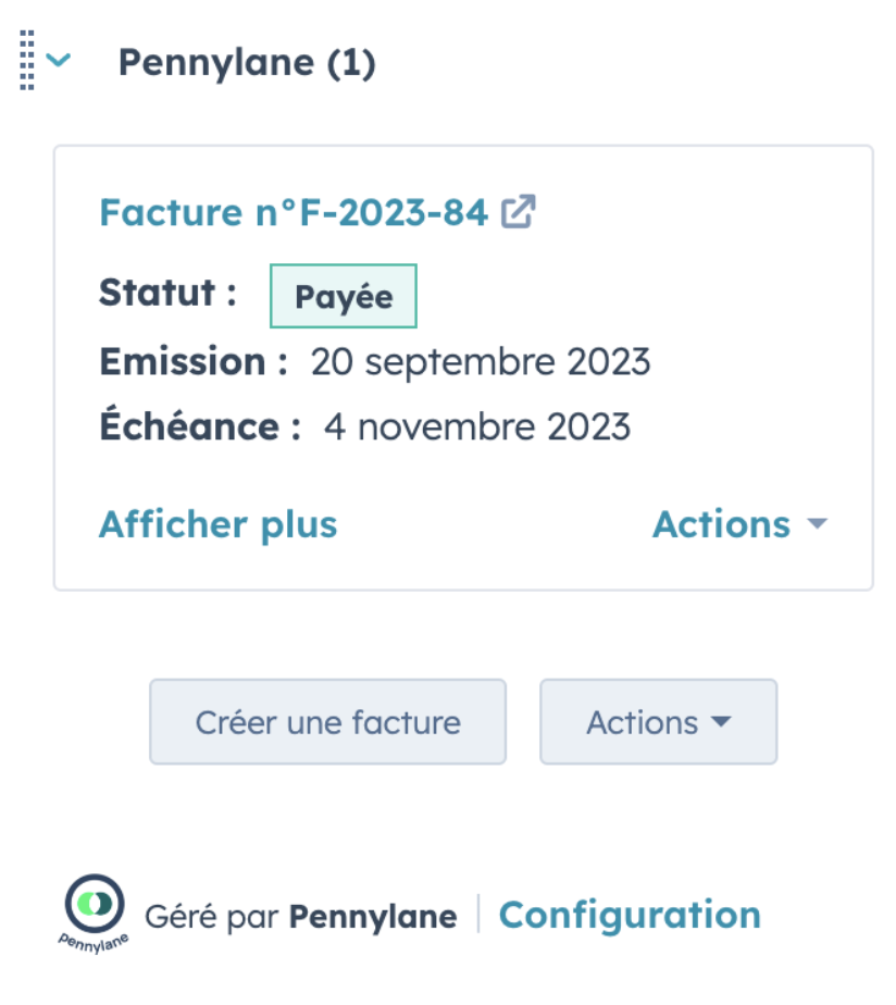 Section Pennylane dans HubSpot